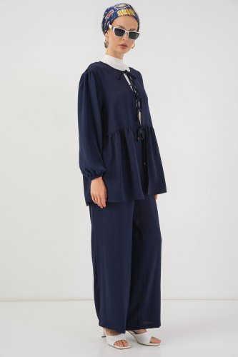 Önü Bağcıklı Tunik Pantolon İkili Takım 6744 Lacivert